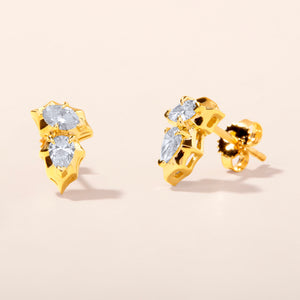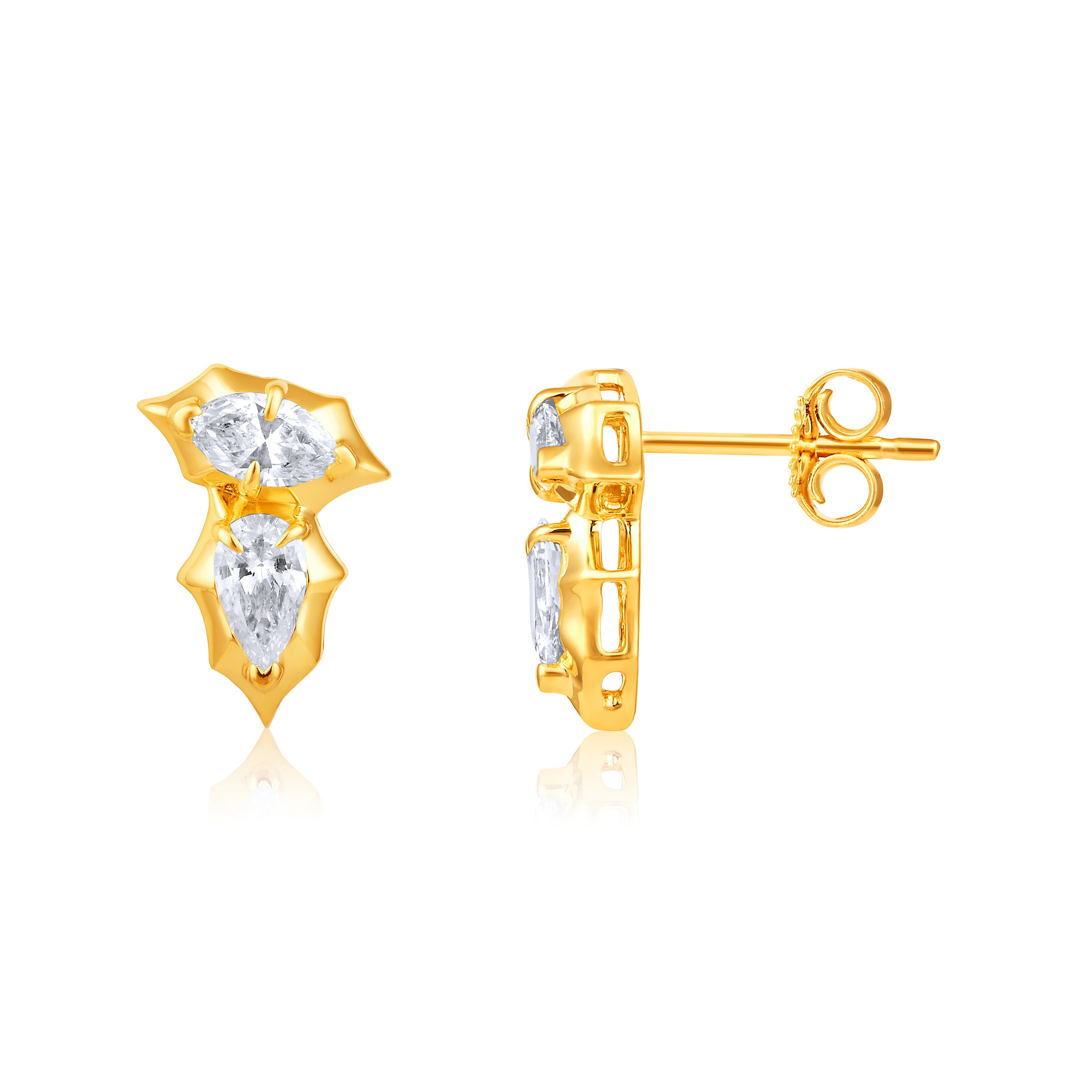 Certified 14K Gold 0.3ct Natural Diamond Pear Marquise Spike Bezel Stud Earrings