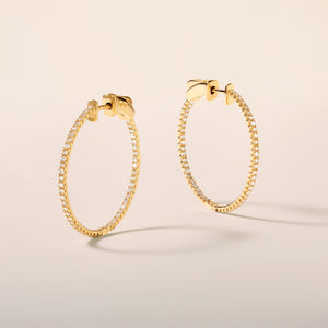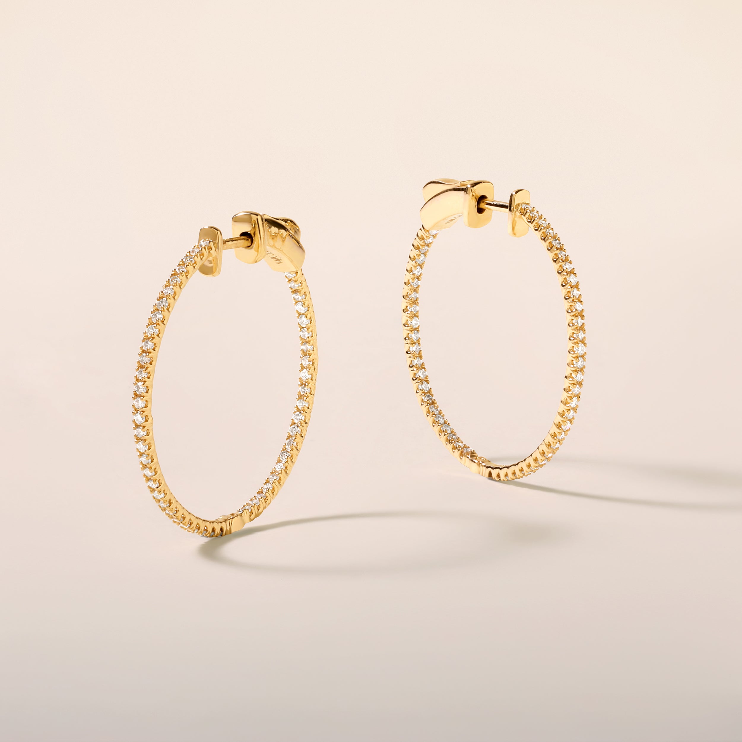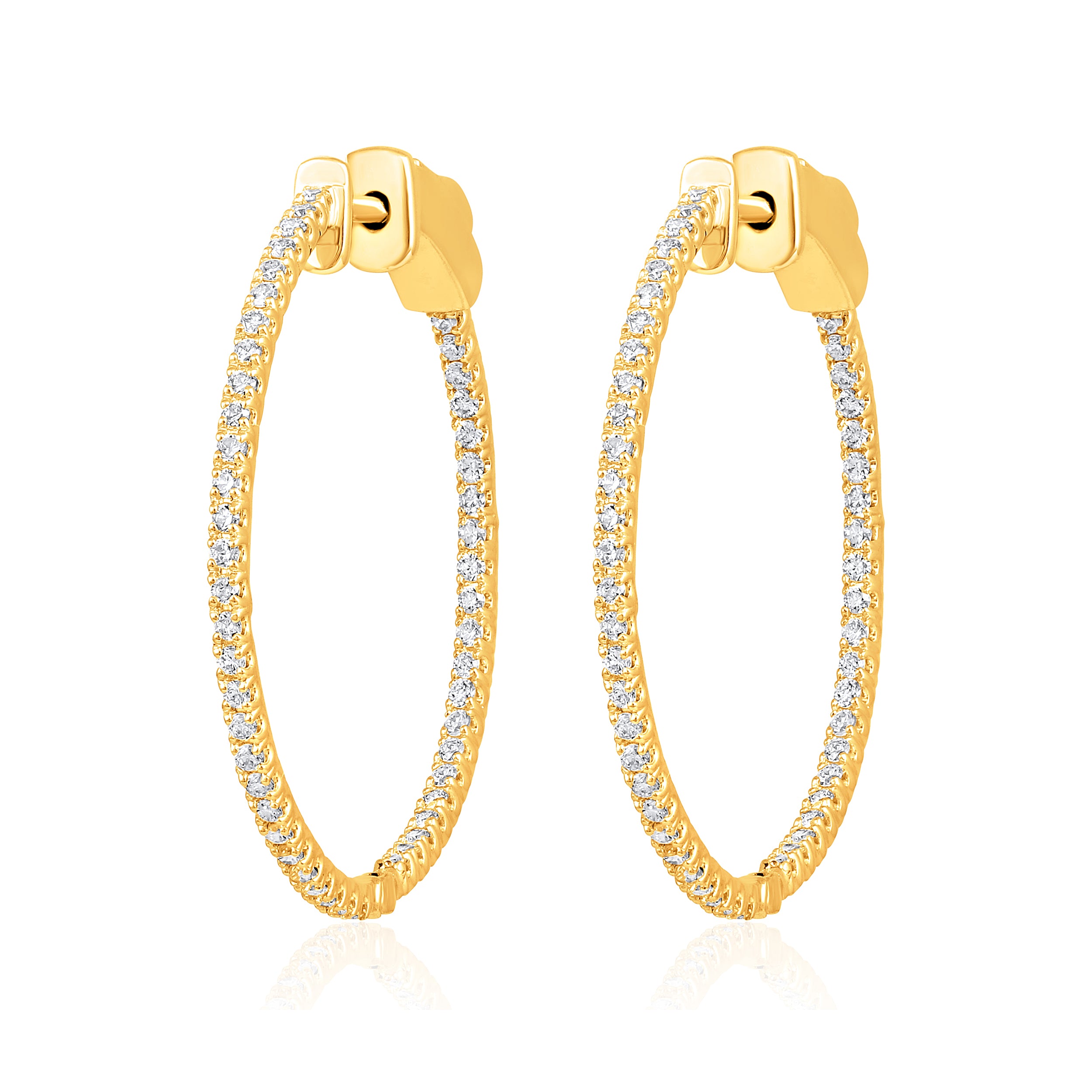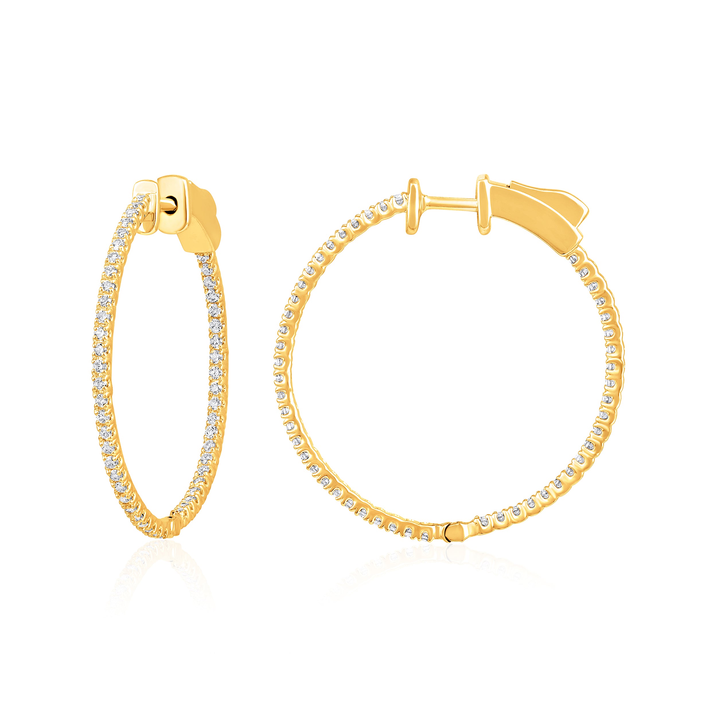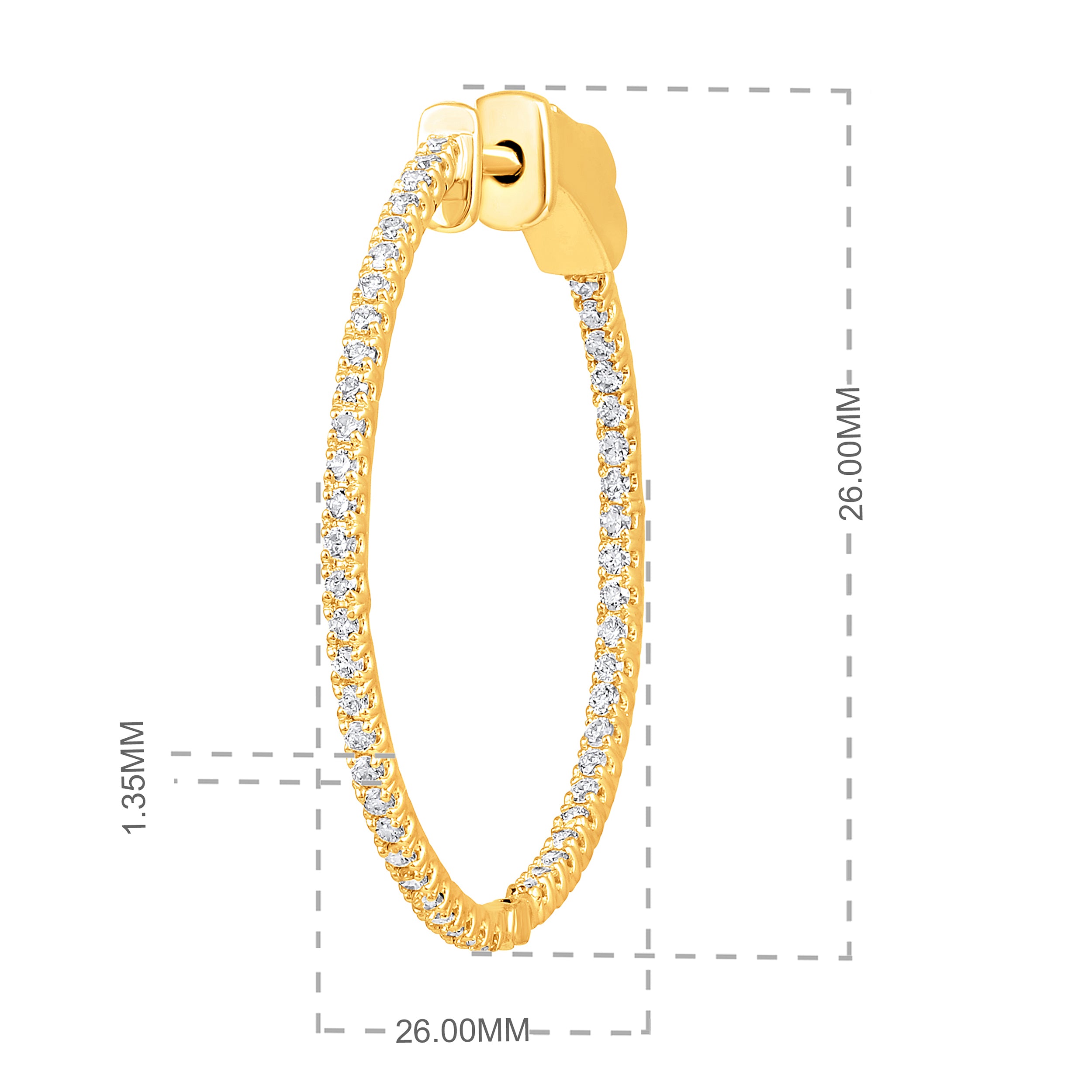 Certified 14K Gold 0.5ct Natural Diamond Round Inside Out 26mm Hoop Earrings