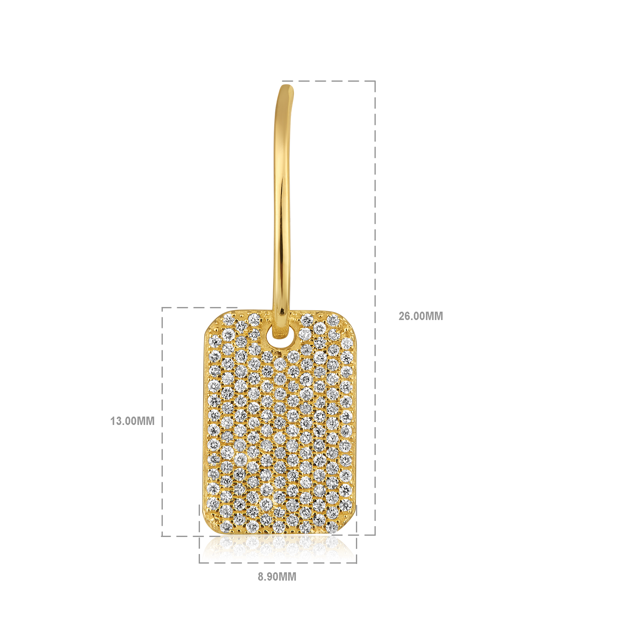 Certified 14K Gold 0.5ct Natural Diamond Rectangle Tag Stud Drop Dangle Earrings